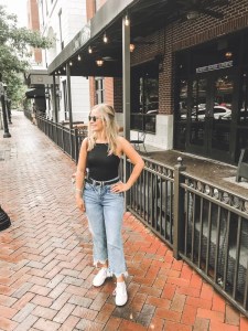 Hey friends! Happy Monday! Do you ever have those go-to casual outfits you loooooove wearing? I found these jeans at Target recently and know they’re going to be a staple in my daily wardrobe. They’re definitely a little out there with the side zipper detailing – but that’s what makes them fun! I love how they’re customizable – you can unzip them to your preferred length! The best part? They’re only $28! Pairing them with a simple black belt, my pink Vans, a black bodysuit, and my Krewe sunnies, I was ready to head out the door!